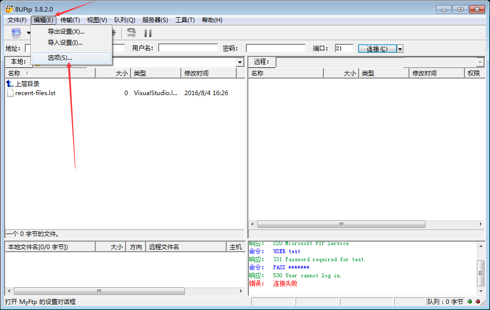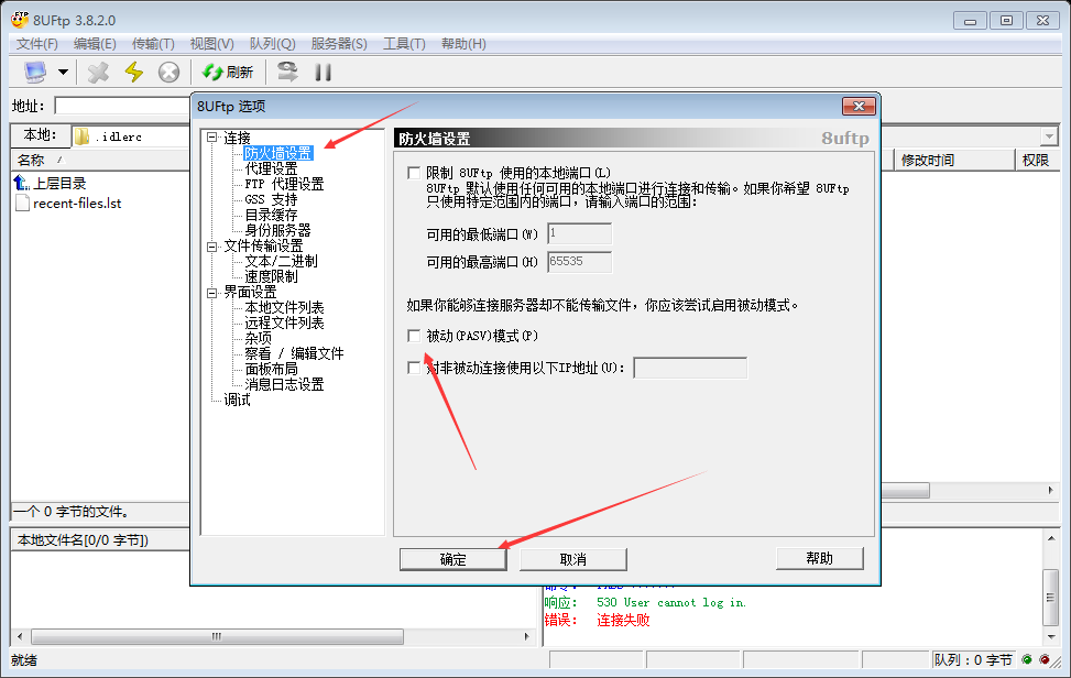 您也可以設置您的FTP工具,取消被動傳輸:如 8UFTP的設置